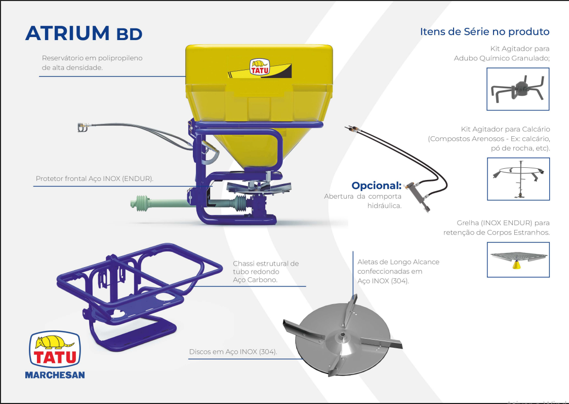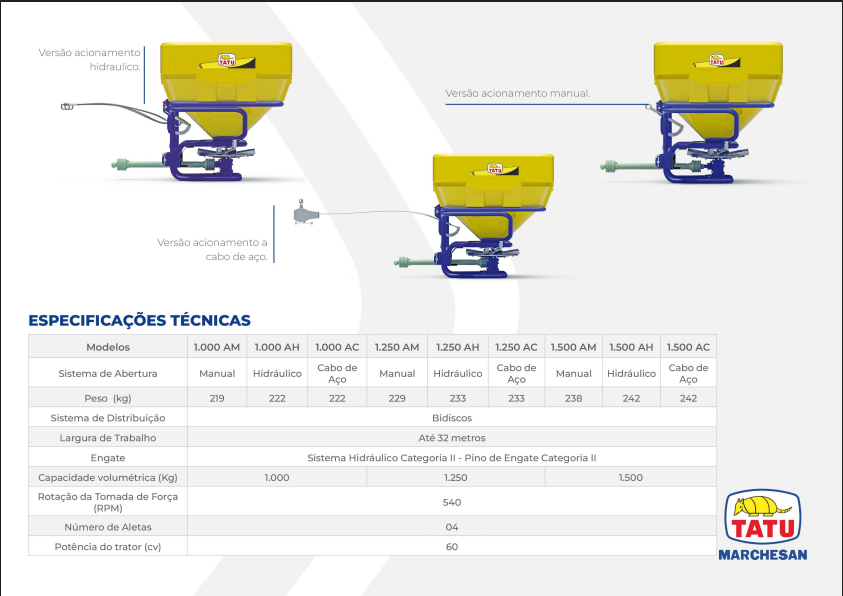Eficiência na distribuição à lanço de: • Adubos granulados; • Calcário e • Sementes finas em geral.