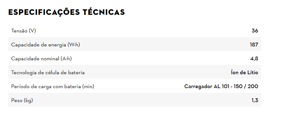 Com 36 V de potência e pesando apenas 1,3 kg, a AP 200S combina alto desempenho com leveza e praticidade. É totalmente compatível com todos os equipamentos do sistema AP, mantendo a versatilidade que os usuários já conhecem.