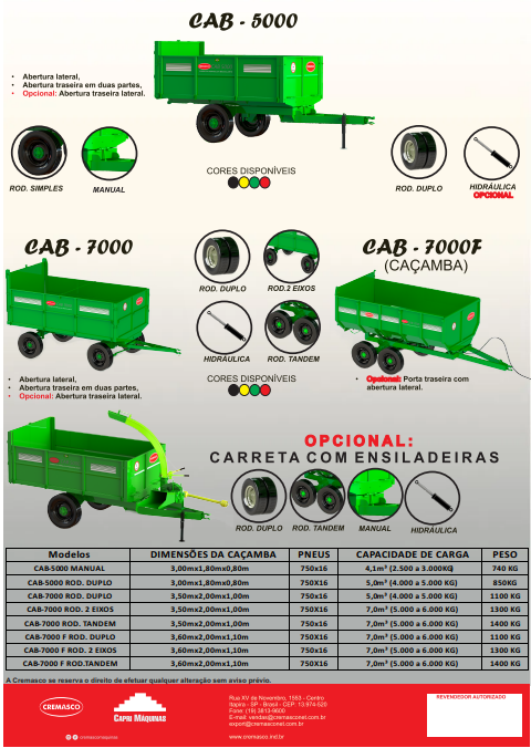 A CAB 7000 F, une, a eficiência da CAB 7000, com capacidade de 7 m³ e 5 Ton., com a praticidade da guarda fixa com saida traseira e levante hidráulico.