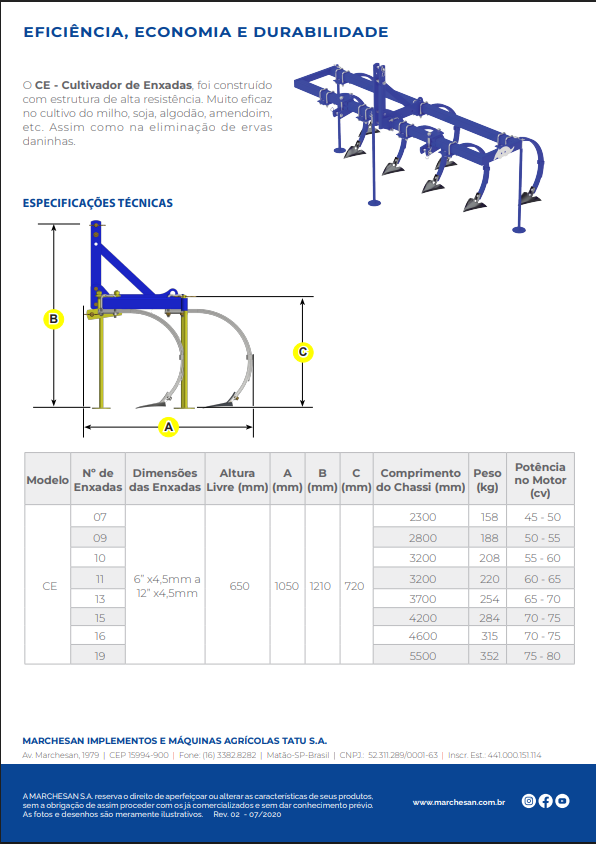 O CE – Cultivador de Enxadas, foi construído com estrutura de alta resistência. Muito eficaz no cultivo do milho, soja, algodão, amendoim, etc. Assim como na eliminação de ervas daninhas.