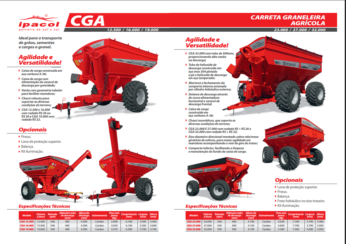Ideal para o transporte de grãos, sementes e cargas a granel.