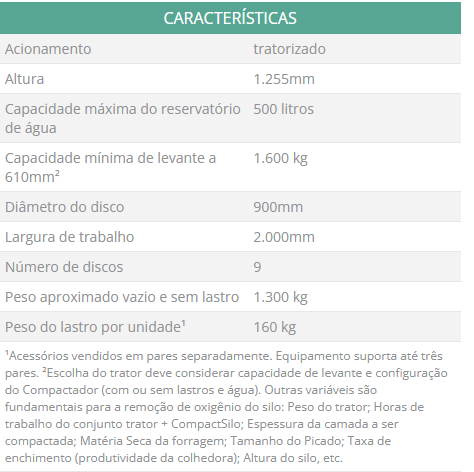 • Aumenta a densidade no silo, otimiza o processo de fermentação (melhor qualidade da silagem), reduz perdas por mofo e bolor, reduz os custos de armazenamento;