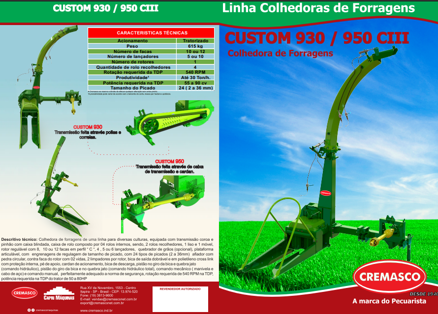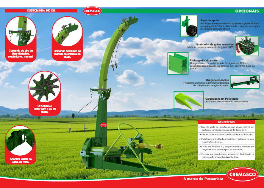 Rendimento máximo em milho, cana, sorgo, napier e todos os demais tipos de capim utilizados para silagem.