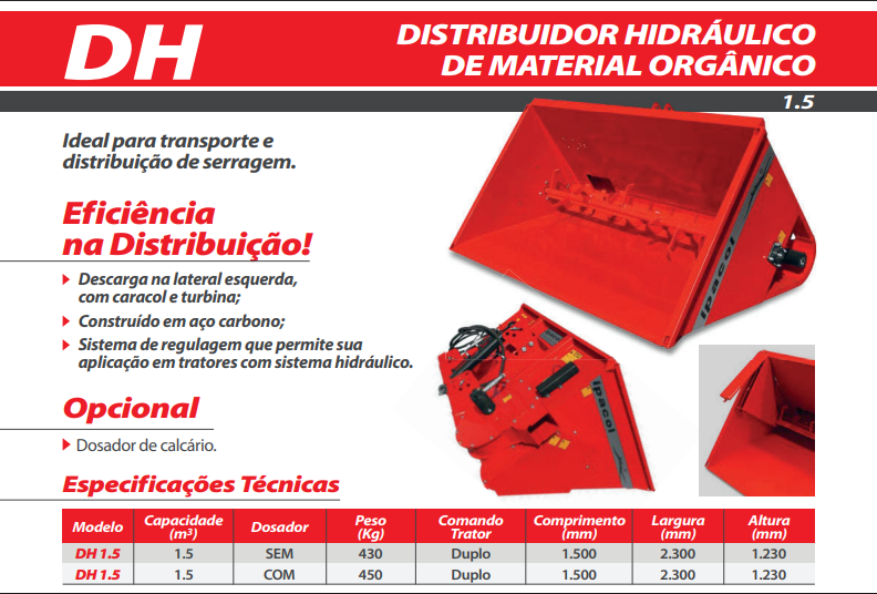 Ideal para transporte e distribuição de serragem.