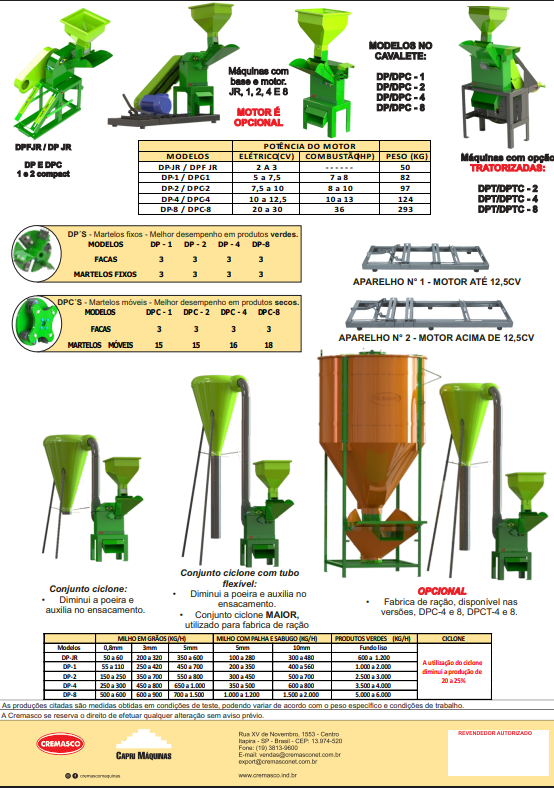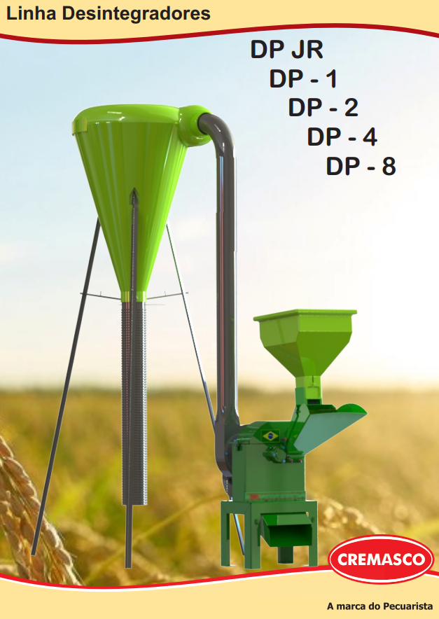 Os desintegradores CREMASCO foram desenvolvidos para picar cana-de-açucar, capins e todas as demais espécies de forrageiras e leguminosas. Desintegra produtos como cascas de cereais, ramas, raízes, tubérculos, etc. Também para moer, desintegrar e triturar milho debulhado, milho com palha e sabugo, produzindo rolão, fubá grosso, fino e super fino.