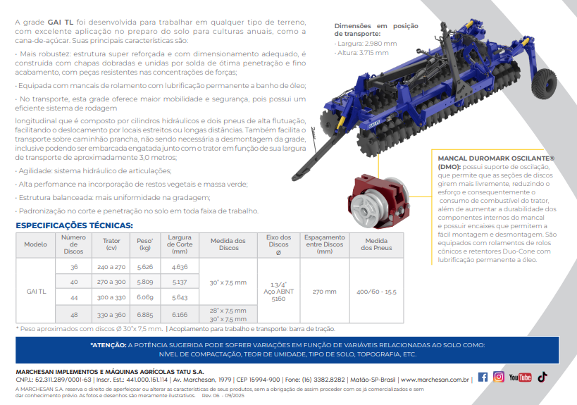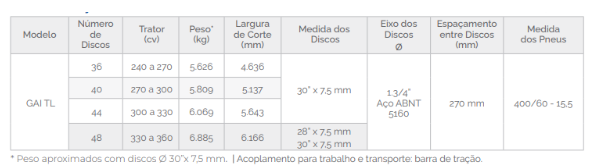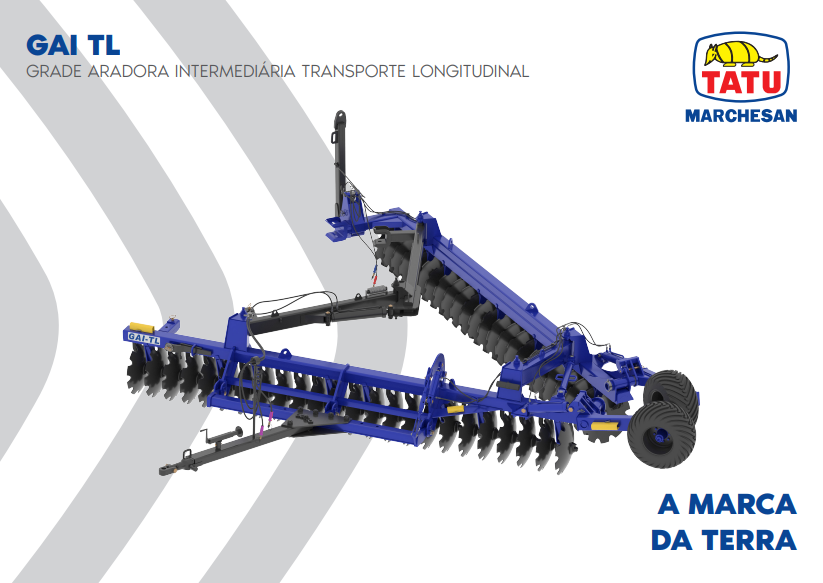 A grade GAI TL foi desenvolvida para trabalhar em qualquer tipo de terreno, com excelente aplicação no preparo do solo para culturas anuais, como a cana-de-açúcar.