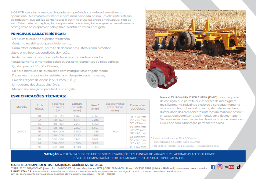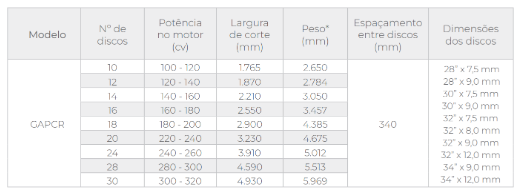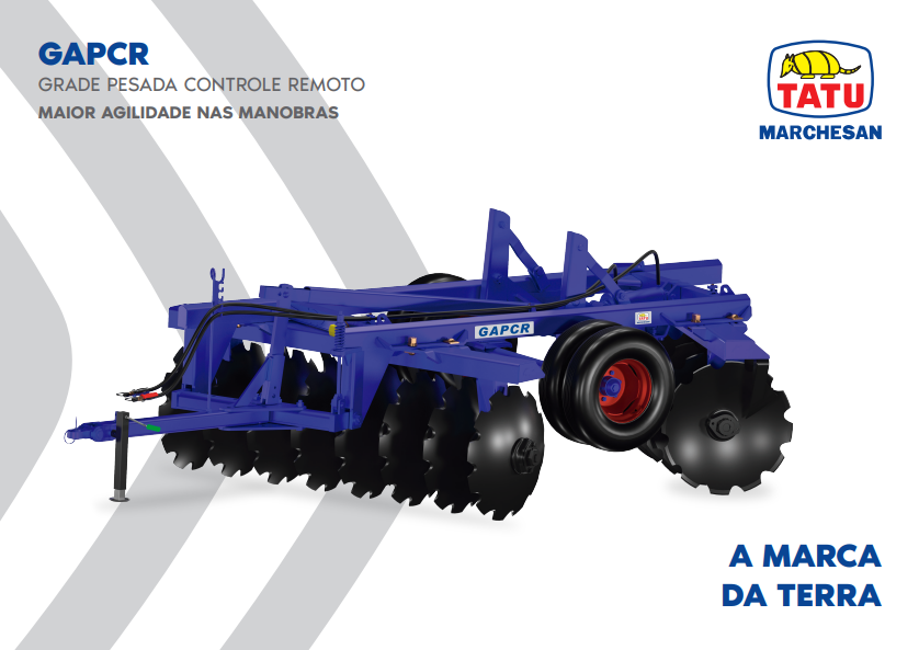 A GAPCR executa os serviços de gradagem profunda com elevado rendimento operacional. A estrutura resistente e bem dimensionada possui um eficiente sistema de rodagem, que agiliza as manobras e permite o uso da grade em qualquer tipo de solo. Esta grade tem aplicação comprovada na destruição de soqueiras, na reforma de pastagens e no preparo do solo para o plantio de cereais em geral.