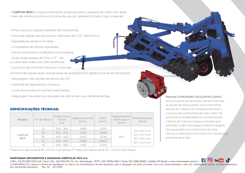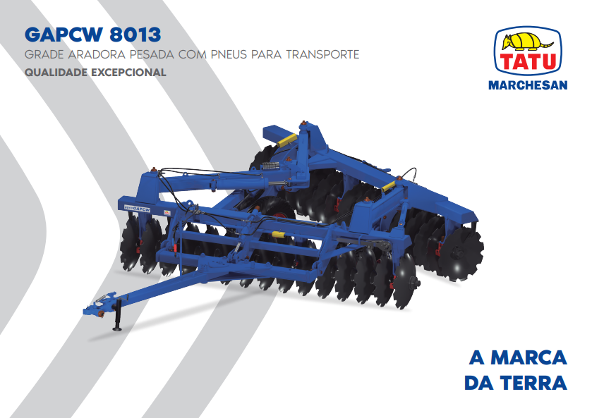 A 8013 GAPCW foi especialmente projetada para o preparo de solos com altos níveis de resíduos como arroz, cana-de-açúcar, girassol, tomate, trigo e abacaxi.