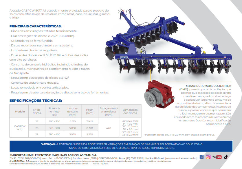 Especialmente projetada para o preparo de solos com altos níveis de resíduos como arroz, cana-de-açúcar, girassol e trigo.