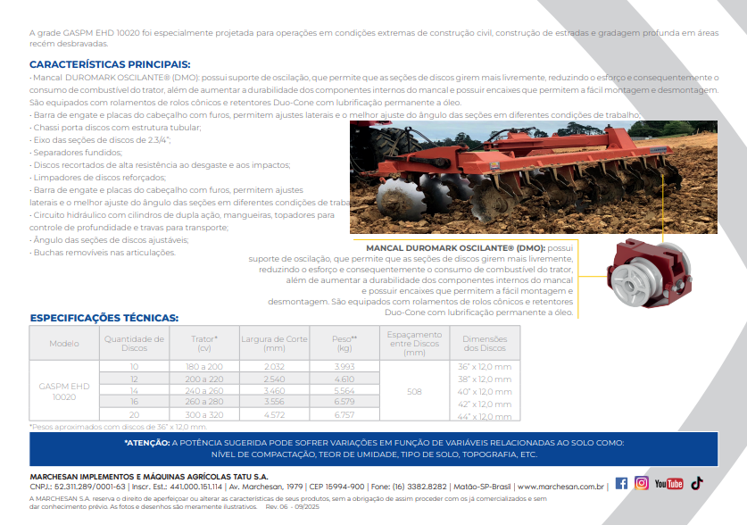 A grade 10020 GASPM EHD foi especialmente projetada para operações em condições extremas de construção civil, construção de estradas e gradagem profunda em áreas recém desbravadas.