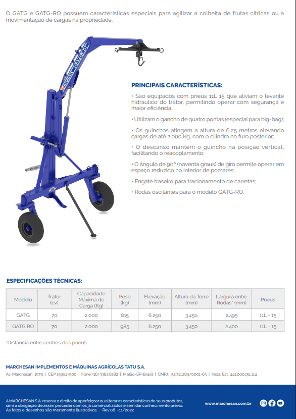 O GATG e GATG-RO possuem características especiais para agilizar a colheita de frutas cítricas ou a movimentação de cargas na propriedade.