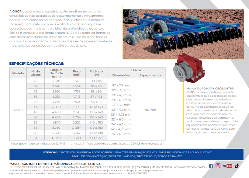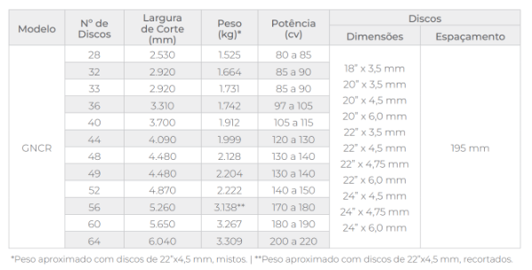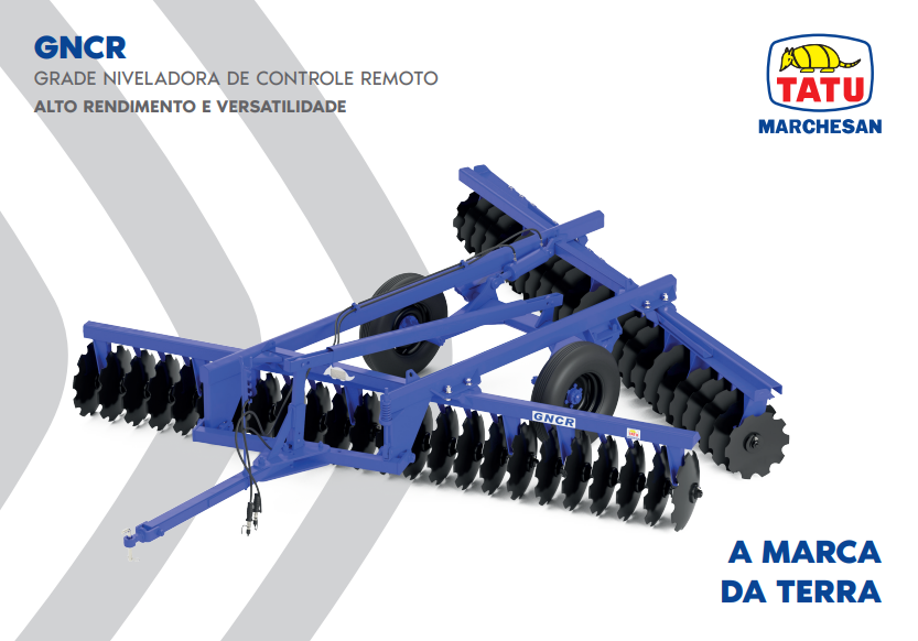 A GNCR possui elevada resistência, alto rendimento e grande versatilidade nas operações de destorroamento e nivelamento do solo, bem como no preparo reduzido. O sistema de rodagem, com comando hidráulico, agiliza as operações e permite o controle ideal da profundidade de corte.