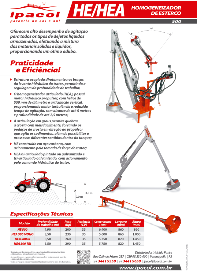 Homogeneizador de esterco fixo, que oferece alto desempenho de agitação para todos os tipos de dejetos líquidos armazenados, efetuando a mistura dos materiais sólidos e líquidos, proporcionando um ótimo adubo.