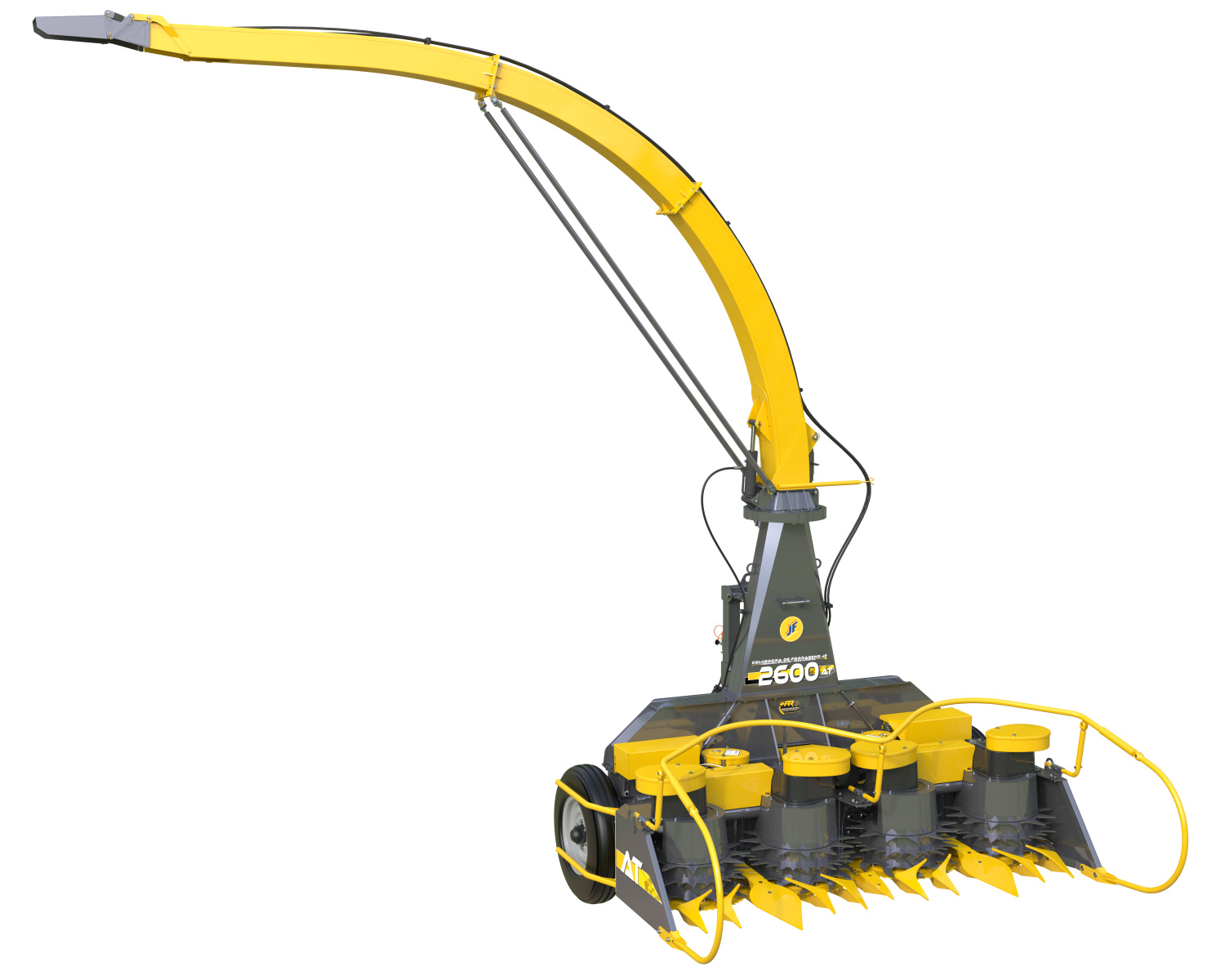 Colhedora de forragens JF 2600 AT (disponível nas versões para acoplamento frontal e traseiro, com 1000 rpm na TDP.), projetada para atender todas as necessidades do produtor rural! Se você quer rentabilidade, qualidade e produtividade, a JF 2600 AT é a solução para sua colheita.