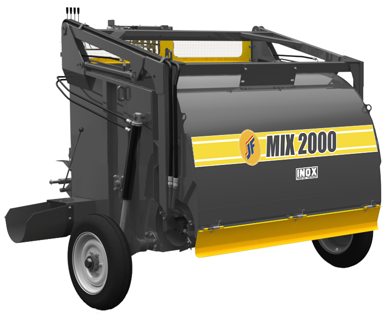 O Misturador JF Mix 2000 é destinado a alimentação pecuária de pequeno porte. Sua função é desensilar, misturar, transportar e descarregar no cocho vários tipos de materiais ensilados a fim de preparar uma ração adequada para a alimentação do gado.