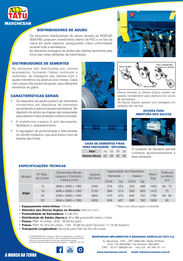 Ideal para a semeadura de TRIGO, SOJA, ARROZ, AVEIA, CEVADA, CENTEIO, PASTAGENS e outras culturas.