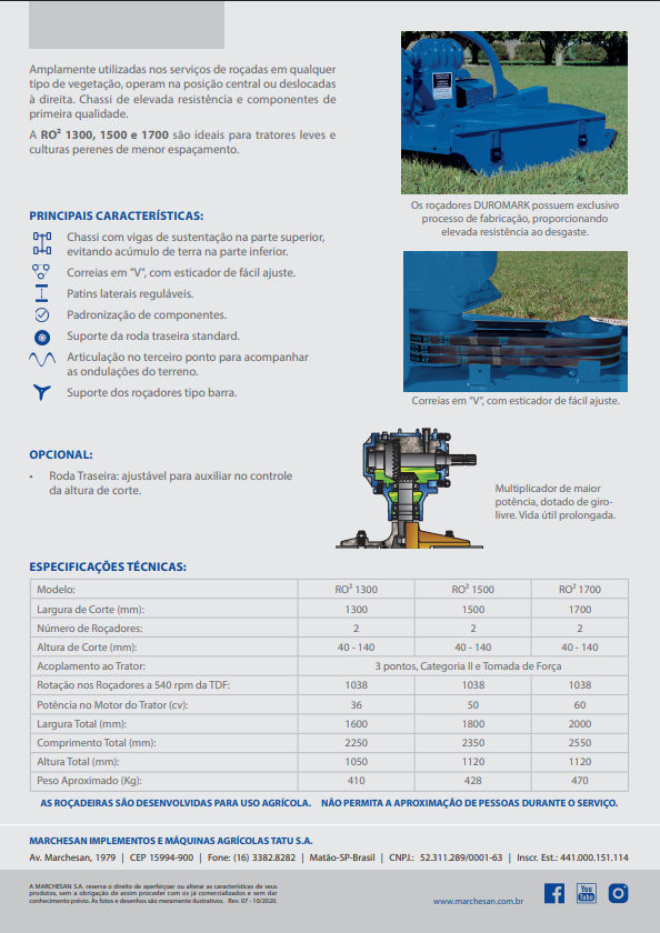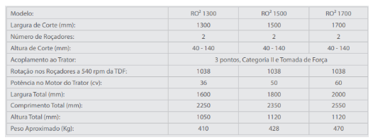 Amplamente utilizadas nos serviços de roçadas em qualquer tipo de vegetação, operando na posição central ou deslocadas à direita. PRINCIPAIS CARACTERÍSTICAS: • Chassi com vigas de sustentação na parte superior, evitando acúmulo de terra na parte inferior; • Correias em “V”, com esticador de fácil ajuste; • Patins laterais reguláveis; • Padronização de componentes; • Suporte da roda traseira standard; • Articulação no terceiro ponto para acompanhar as ondulações do terreno; • Suporte dos roçadores tipo barra.