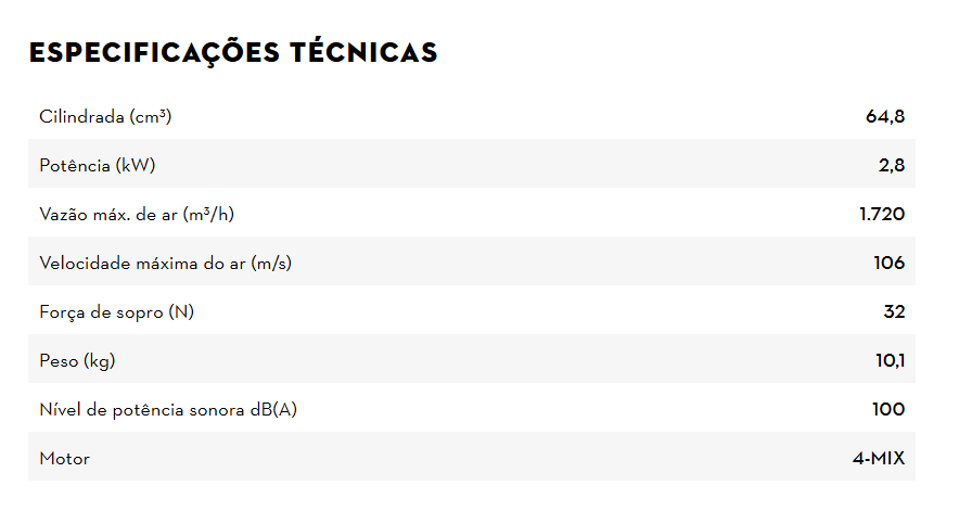 Utilizando um motor STIHL 4-Mix, esse potente soprador profissional possui grande vazão e velocidade de saída de ar. O Soprador BR 600 da STIHL é indicado para manutenção de grandes áreas como parques, rodovias, vias urbanas, silos de armazenagem de grãos, máquinas agrícolas, entre outras. Para um trabalho ainda mais confortável, é possível utilizar o cabo tipo bike.