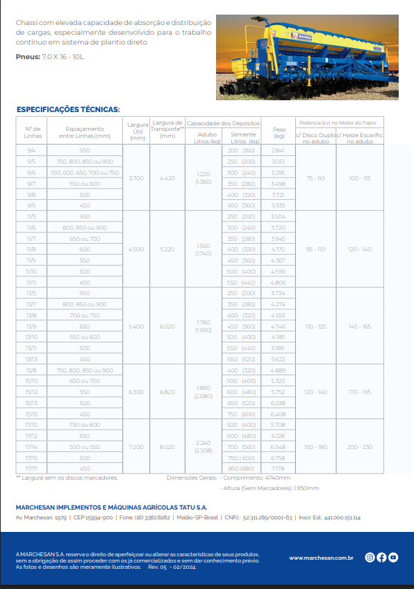 Chassi com elevada capacidade de absorção e distribuição de cargas, especialmente desenvolvido para o trabalho contínuo em sistema de plantio direto.
