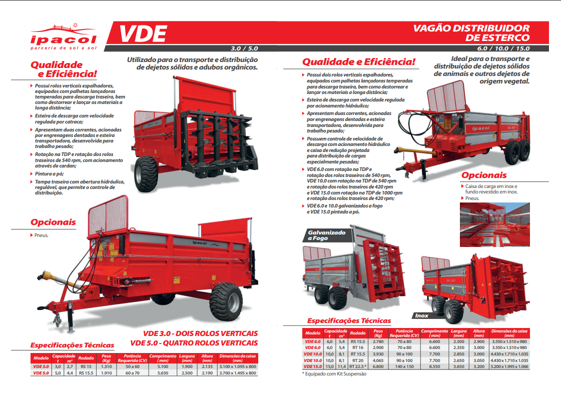 Utilizado para o transporte e distribuição de dejetos sólidos e adubos orgânicos.